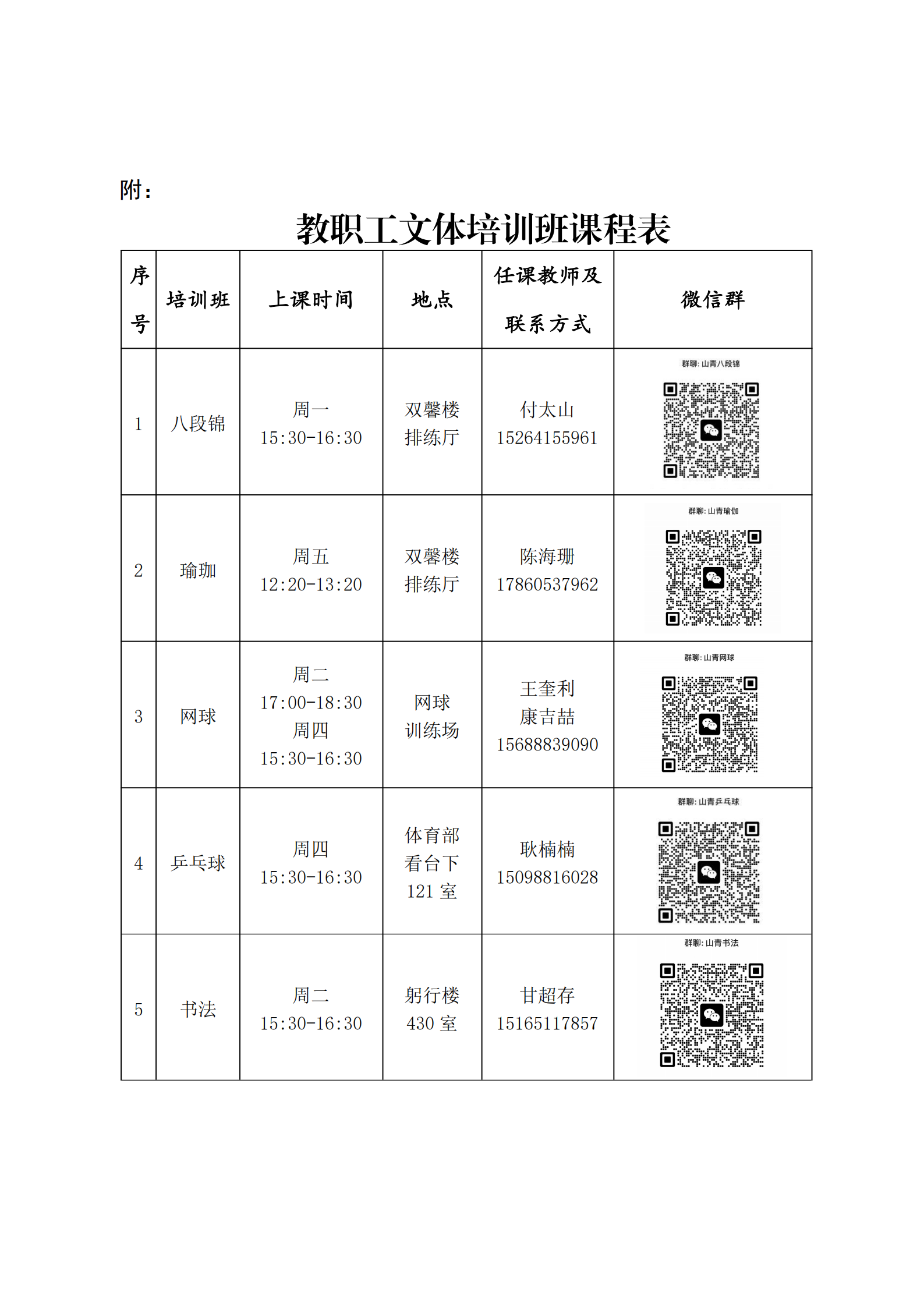 培训班起止时间:9月11日至12月15日。文体培训班课程安排见附件。