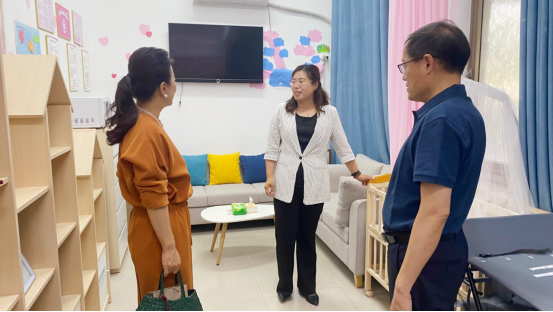 校妇委会主任、工会副主席栾丽萍全面介绍“工会妈妈小屋”建设情况,2023年,我校“工会妈妈小屋”荣获省级“工会妈妈小屋”示范点称号,屋内设施齐全,管理规范,同时还提供亲子阅读书籍,帮助女教职工放松心情、学习成长,为女教职工孕期哺乳提供温馨私密空间。